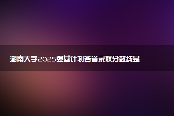 2025湖南大学强基计划综合成绩=(高考成绩÷高考满分×750)×85%+(学校考核成绩÷学校考核成绩满分×750)×15%。小编在下文整理了东北大学2025强基计划分省分专业录取分数线,一起往下看吧。