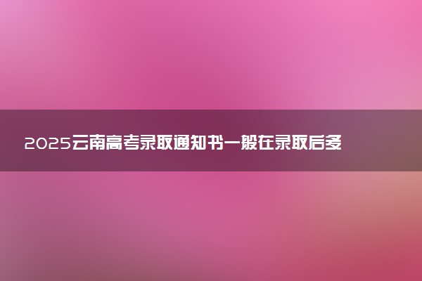 2025年云南高考录取通知书一般在7月中旬开始发放,不同批次发放时间有所不同。云南高考录取通知书的查询入口:可登录云南省招生考试院官网,查询本人的投档状态和录取结果,从而间接了解录取通知书的发放情况。以下是详细内容,一起来看看吧。