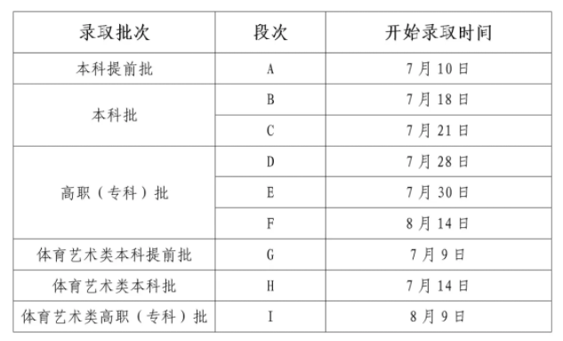 体育艺术类本科批H段:7月14日