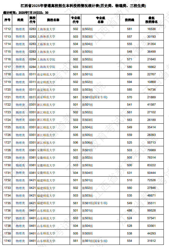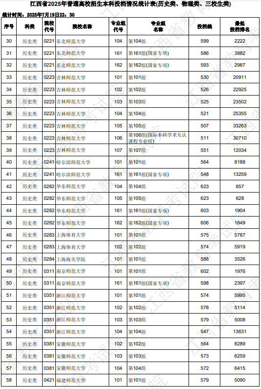 今年江西历史类本科录取控制分数线为486分,物理类本科录取控制分数线为429分。在本科批次中,一些顶尖高校的投档线远高于本科线。例如,南京大学历史类投档线为645分,复旦大学为642分。
