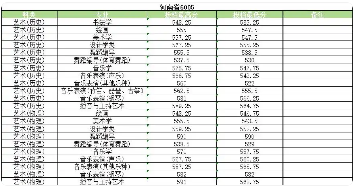 河南省艺术类本科批历史类录取最低分:视觉传达设计471.9分,环境设计463.15分;物理类录取最低分:视觉传达设计452.7分,环境设计446.2分。我校艺术类计算公式为:综合成绩=高考文化课成绩×0.7+专业省统考成绩×0.75。