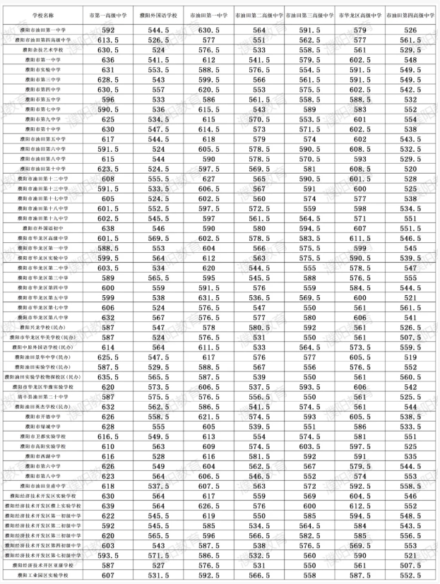 二、2025年濮阳市市城区第一批次公办普通高中分配生录取分数线