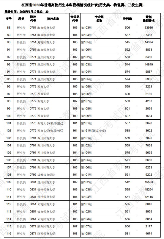 2025年江西高考各高校最低投档分数线 本科批次投档线是多少