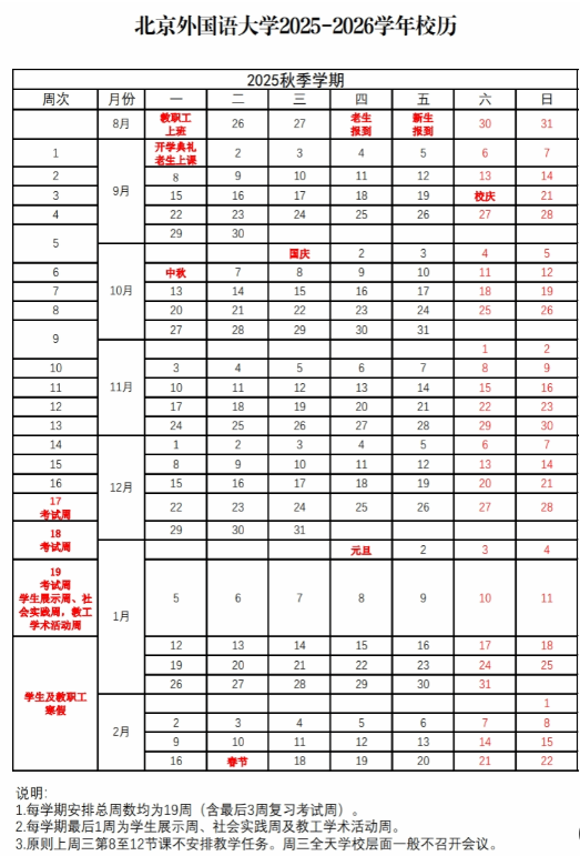 根据官网信息,2025年北京外国语大学老生8月28日入学报到,新生8月29日报到。若因特殊情况无法按时报到,务必提前向所属学院提交书面请假申请,获批后方可延期,未经同意逾期未报到者,将视作自动放弃入学资格。
