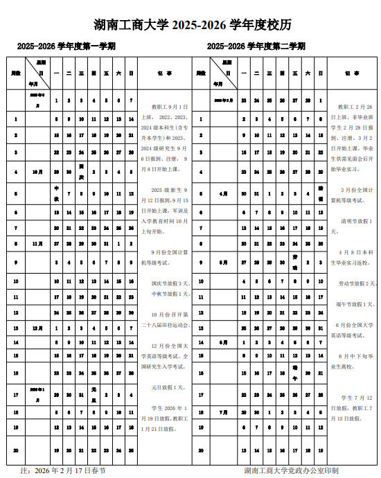 2025湖南工商大学校历如下: