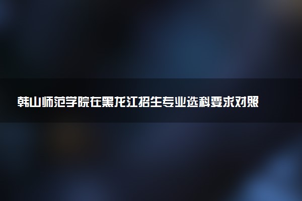 韩山师范学院在黑龙江有不同选科要求。有要求为物理+化学;有的要求有历史+不限、物理+不限这两种;还有的要求物理或历史,再选科目无要求。如果想了解最新的韩山师范学院在黑龙江招生专业选科要求,一方面可以关注韩山师范学院的官方网站,学校会及时发布招生简章等招生相关信息。另一方面,黑龙江省教育招生考试院的官网也会公布各类高校招生的政策、要求等内容。