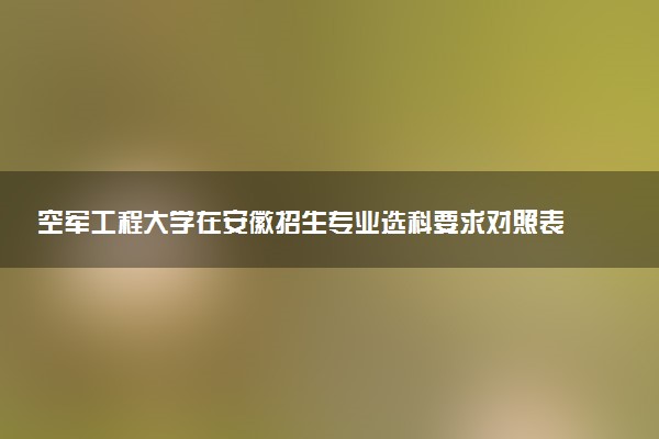 空军工程大学在安徽省的招生专业选科要求,对于正在规划选科的考生来说非常重要。以下小编汇总了主要的选科类型及相关专业,希望能帮你快速了解。选择自己擅长和感兴趣的科目,更容易取得好成绩。新高考采用等级赋分制,考生需要考虑在该科目上的相对竞争力。