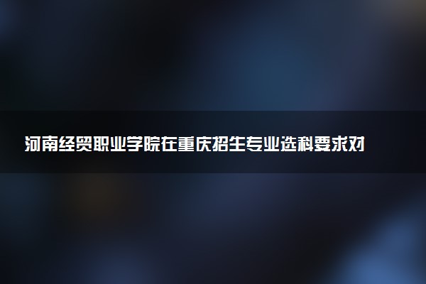 河南经贸职业学院在重庆的招生专业选科要求根据首选科目(物理或历史)及再选科目进行设置,大部分专业对再选科目无特殊要求,仅有部分理工科学科对化学科目有明确限定。选科要求可能微调,建议以官方最新公布的招生简章为准。