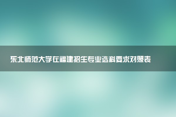 东北师范大学在福建省招生的主要专业及选科要求如下,但建议考生尽早明确专业方向,并据此倒推现在的选科组合。如果目前选科已经确定,那么在填报志愿时,就要仔细核对考生的选科组合是否符合心仪专业的要求。