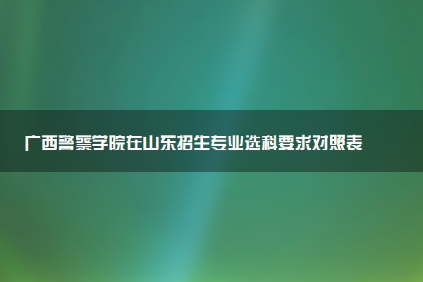广西警察学院在山东招生专业的选科要求会根据不同年份有所变化。如果你想了解广西警察学院在山东招生专业的最新选科要求,一方面可以登录广西警察学院官网查询该校最新一年招生简章;另一方面也能关注山东省教育招生考试院发布的相关信息。