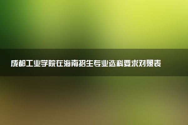 成都工业学院在新高考制度下,语文、数学、外语为必考科目,选考科目从物理、化学、生物、政治、历史、地理等六门中选择三门。成都工业学院在海南的招生专业选科要求中,大部分专业不提科目要求,部分理工、医学及教育类专业有特定选科限制,具体需以当年最新招生简章为准。成都工业学院在海南的选科要求因专业而异,部分专业无要求,部分需选考物理、化学等科目,具体需以当年招生简章或选科要求对照表为准。根据2025年招生简章,海南地区的选科要求可能为化学或物理+化学,但具体需结合专业查看。
