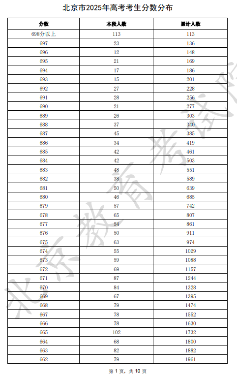 以下是小编整理的2025北京高考一分一段表及位次排名完整版,供2026届考生参考!