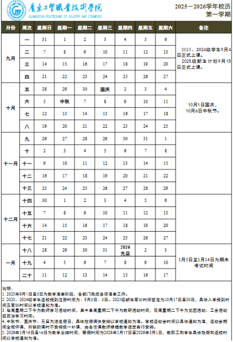 作为广东专科学校,广东工贸职业技术学院的假期规划既遵循教育教学规律,又兼顾师生休息与发展需求。根据学校官方发布的2025-2026学年校历,2026年寒假安排已正式确定,为帮助师生提前做好假期规划,以下将从假期时长、时间节点及寒假建议等方面展开详细解析。